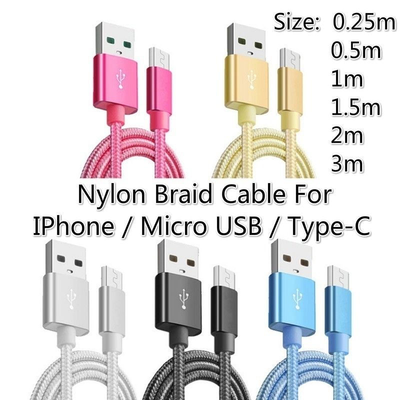 0 25m 0 5m 1m 1 5m 2m 3m Nylon Braided Charger Cable Fast Charging